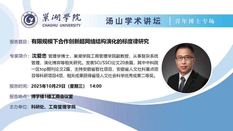 • 湯山學(xué)術(shù)講壇青年博士專場(chǎng)第24講:(10月29日:工商管理學(xué)院沈愛忠博士講座)