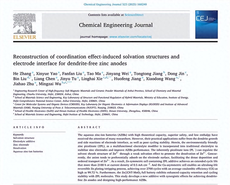巢湖學(xué)院化學(xué)與材料工程學(xué)院新能源材料與器件科研創(chuàng)新團(tuán)隊(duì)張賀博士在國際權(quán)威...
